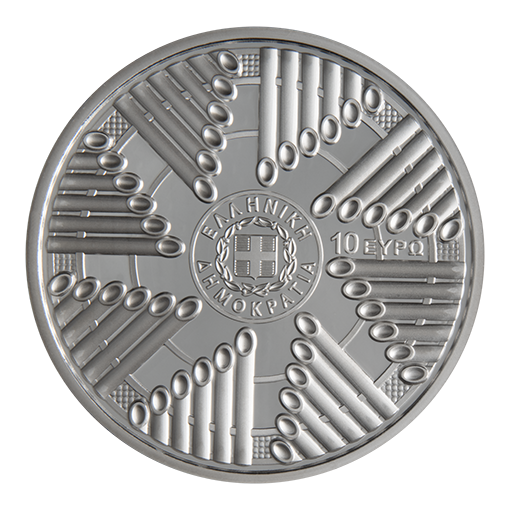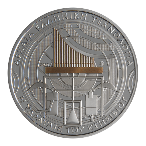 Η απεικόνιση της υδραύλιδος του Κτησίβιου στην πρόσθια όψη του νομίσματος βασίζεται σε αναπαράστασή της από το Μουσείο Αρχαίας Ελληνικής Τεχνολογίας Κώστα Κοτσανά.