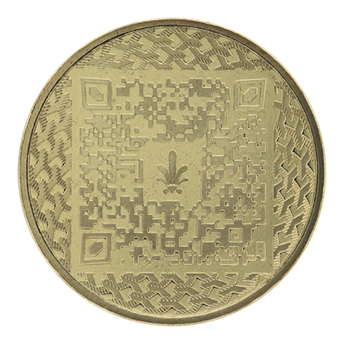 Αναζητώντας τρόπους να φέρουμε την τελειότητα της διαδικτυακής εμπειρίας στο ίδιο το παραγόμενο προϊόν, δημιουργήσαμε αυτό το μετάλλιο, που στην πρόσθια όψη φέρει λεπτομέρειες από όλα τα νομίσματα του φετινού μας προγράμματος και στην οπίσθια όψη έναν κωδικό QR, που λειτουργεί ως σημείο μετάβασης από τον υλικό κόσμο στον κυβερνοχώρο.