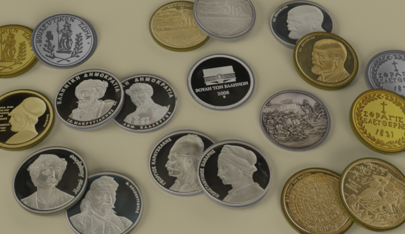 - Η δεύτερη ενότητα περιλαμβάνει τα αναμνηστικά μετάλλια που εκδίδει η Βουλή των Ελλήνων σε συνεργασία με το Νομισματοκοπείο με αφορμή σημαντικές εθνικές επετείους. Η έκθεση παρουσιάζει δεκαεννέα μετάλλια που δωρήθηκαν στο Νομισματικό Μουσείο τα έτη 2018 και 2025. Παρουσιάζει, επίσης, επτά από τα μετάλλια που απονέμονται από τον Πρόεδρο της Βουλής κυρίως σε Προέδρους Κρατών και Κοινοβουλίων, αποτελώντας την ανώτατη διάκριση του Ελληνικού Κοινοβουλίου.