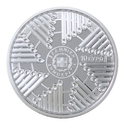 The design of the hydraulis of Ktesibios on the obverse of the coin is based on a reconstruction by the Kotsanas Museum of Ancient Greek Technology.